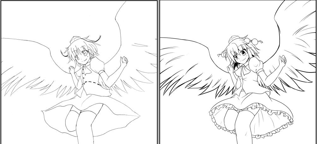 髪の本数や線が他のキャラに比べて圧倒的に多いです。